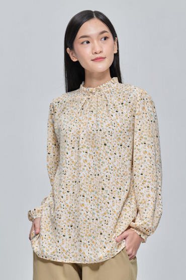 – Ruffle hem, button front